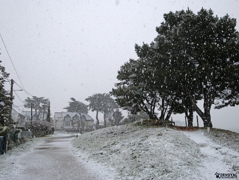 De la neige à Kervoyal et dans toute la Bretagne, c’est assez rare. La dernière fois que des flocons étaient tombés et restés plus de quelques heures, c’était en 2021 (voir ici).