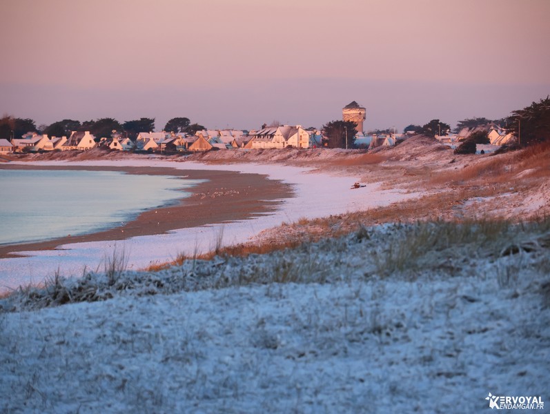 Le lendemain, une bonne partie était restée sous un grand soleil, avant de disparaitre définitivement la nuit suivante. Voici donc toutes les photos (parfois insolites) de Kervoyal, de son moulin, de ses plages et de ses rues, sous la neige en ce début 2026.